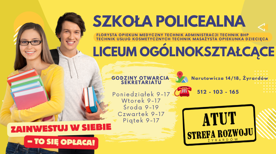 - Szkołę Policealną – kierunki dopasowane do realnych potrzeb rynku.